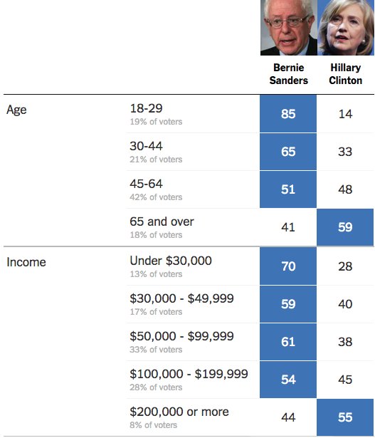 Secondly, Sanders has confounded the liberal opinion-making establishment. For many elections the liberal pundit class has assured its left-sided counterpart that, no, you'll have to accept our deeply-compromised, business-friendly candidate, because no social democratic candidate could ever reach anything like a critical mass of popularity. But Bernie has shown remarkably by slowly, if unsteadily, rebuilding what used to be the Democratic coalition; broad, cross-racial support from poor and working class voters, and young people.